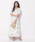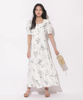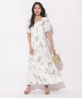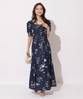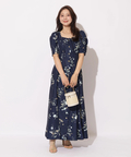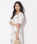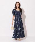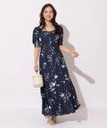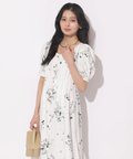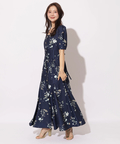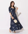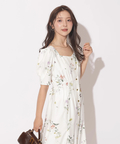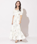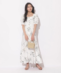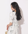 繊細なボタニカル柄が華やかに映えるマーメイドワンピース。