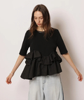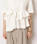 裾にあしらった立体的なフリルが目を引くカットソー。