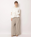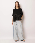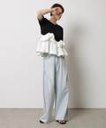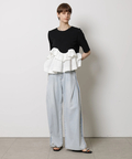 フリルデザインを活かして、シンプルなボトムと合わせるとバランスよくまとまります。