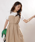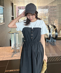 一枚でレイヤードスタイルが完成するドッキングワンピース。