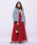 羽織りにデニムシャツを重ねれば、日常使いしやすいバランスに仕上がります。