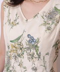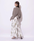 落ち着いたトーンのプリントで華やかさがありながら、日常にも取り入れやすい一枚です。