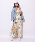 フラットサンダルを合わせて軽やかに着こなしたり、肩掛けのニットをアクセントにプラスするのもおすすめ。かごバッグを持てば、季節感のあるやわらかなスタイルに仕上がります。