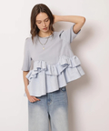 裾にあしらった立体的なフリルが目を引くカットソー。