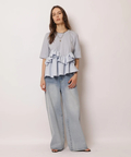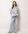 デニムを穿いてカジュアルにまとめたり、細身のパンツと合わせてフリルのボリュームを引き立てた着こなしもおすすめです。