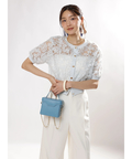 程よくフィットするシルエットと短めの丈感で上半身をすっきり見せつつ、透け感のある素材で軽やかに着られる一枚です。