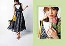 カット付ビスチェSET ¥12,000 + tax プリントフレアロングスカート ¥18,000 + tax ITEM CHECK