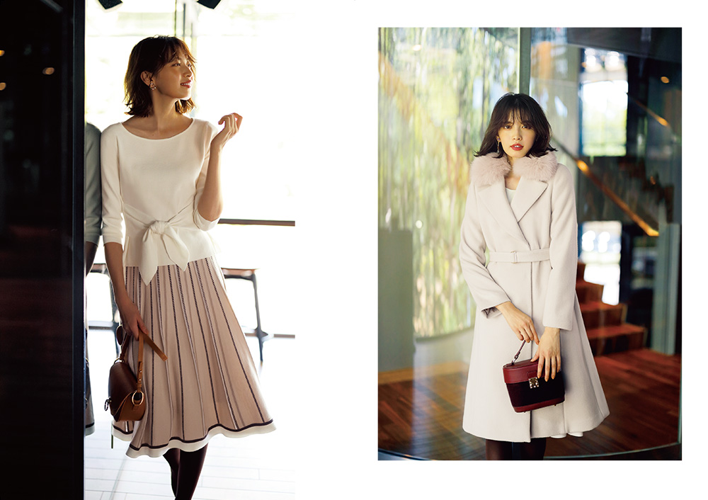フードファー付5wayコート ¥69,000 + tax 前後2WAYふわふわニット ¥13,000 + tax ベルトラップ風台形スカート ¥17,000 + tax ITEM CHECK
