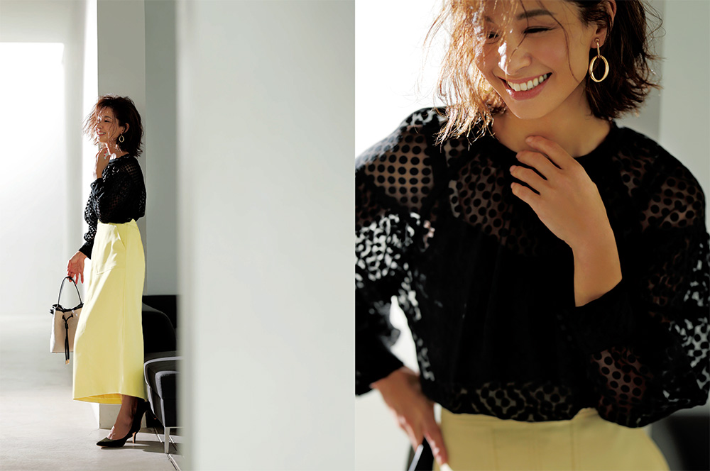 ピンタックギャザー透けブラウス ¥19,000 + tax